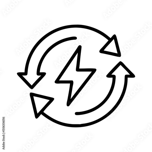 Recycling Arrows with Lightning Icon Representing Sustainable Energy and Power Renewal