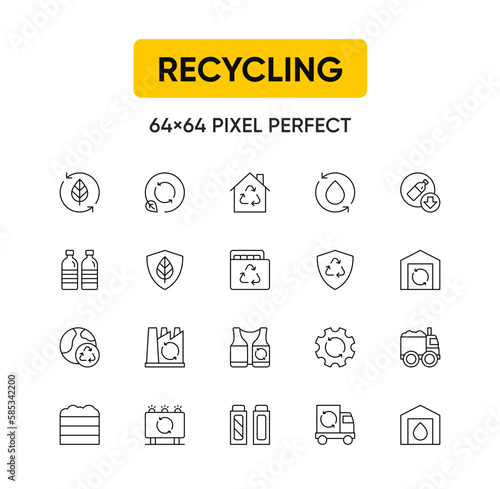 Recycling, ecology, environment and sustainability concepts. Outline symbol collection. Pixel Perfect.