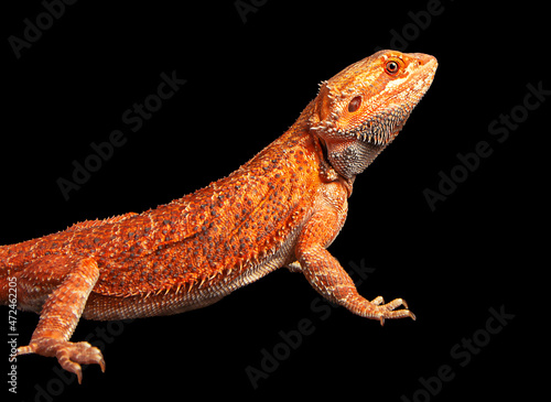 red agama lizard isolated on a black background