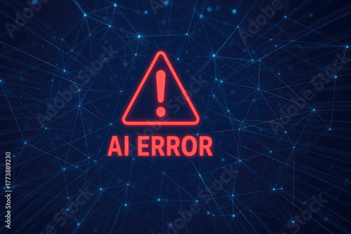 Red AI ERROR warning sign with exclamation mark on a digital network background artificial intelligence