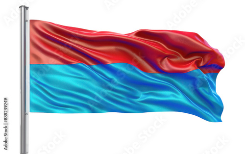 Red and Blue Flag Waving in the Wind on a White Background