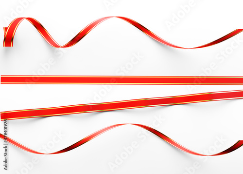 Red and Gold Ribbons on White Background