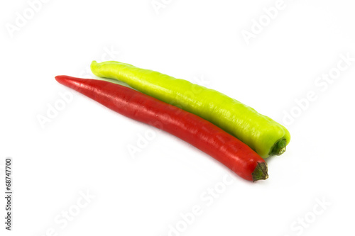 Red and green pepper isolated on a white background