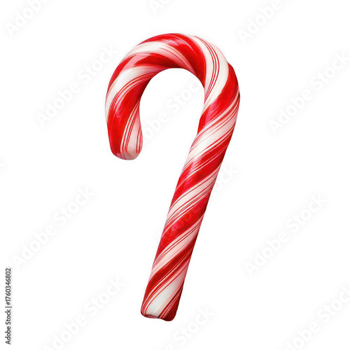 Red and White Striped Candy Cane isolated on white and transparent background.