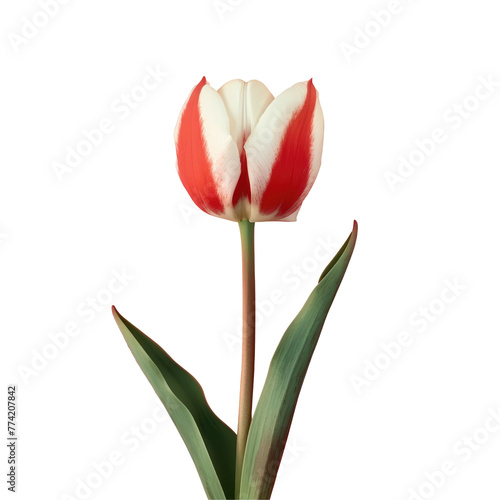 Red and white tulip with a green stem
