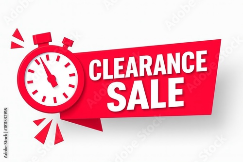 Red banner with clock icon announcing a limited time clearance sale with big discounts and special offers