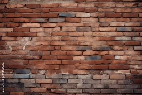 Red brick pattern. Old brick wall with cracks and scratches. Horizontal wide brickwall background.