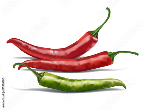 Red chili pepper isolated on white vector illustration