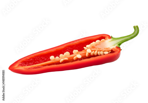 red chili pepper sliced in half isolated on transparent background Generative Ai.