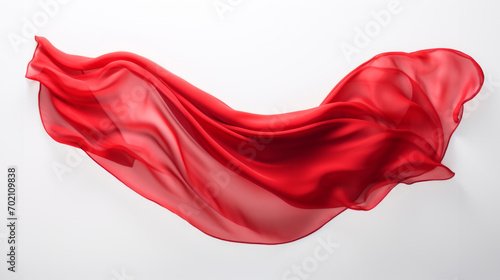 Red cloth that is floating and hiding something unknown underneath. Fabric isolated on white background.