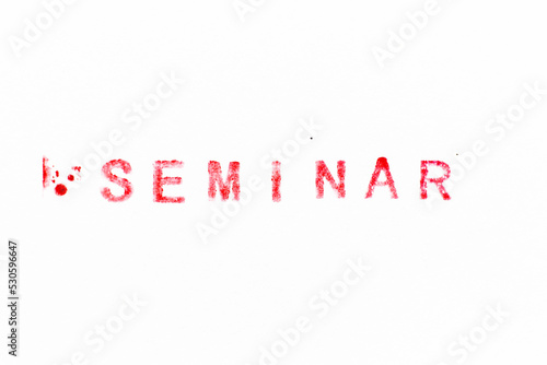Red color ink rubber stamp in word seminar on white paper background