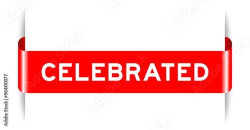 Red color inserted label banner with word celebrated on white background