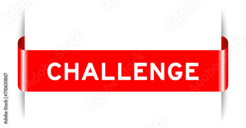 Red color inserted label banner with word challenge on white background
