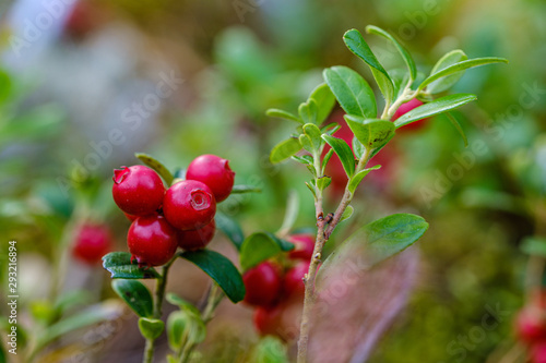 red cranberries in green forest bed