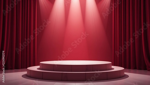 Red Curtains Stage With Two Tiered Platform