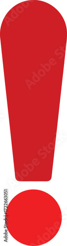 red exclamation mark icon isolated on white background, flat vector symbol for alert, warning, error or attention sign