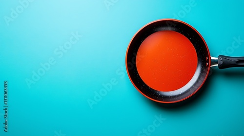 Red Frying Pan Teal Background Kitchen Cookware Cooking Food Recipe