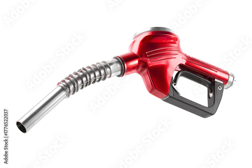 Red fuel nozzle with silver hose against black background