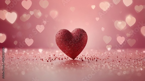 Red glitter heart on a pink glitter background. Isolated on a pink background. Valentines day