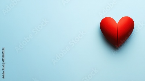 Red heart on a light blue background, symbolizing love and affection.