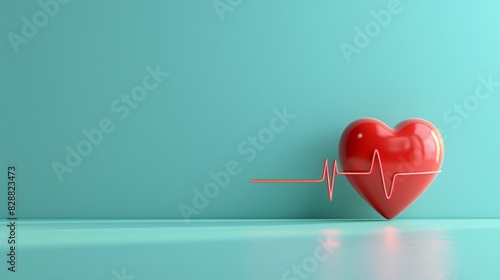 Red heart with cardiogram line on teal background, symbolizing health, cardiology, and heart care. Ideal for medical and healthcare concepts.