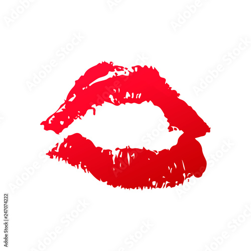 Red lipstick kiss on white background. Kiss mark vector illustration. Imprint of the lips. Valentines day theme print. Easy to edit template for greeting card, poster, banner, flyer, label, etc.