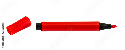 Red marker pen isolated on white background. Highlighter pen.