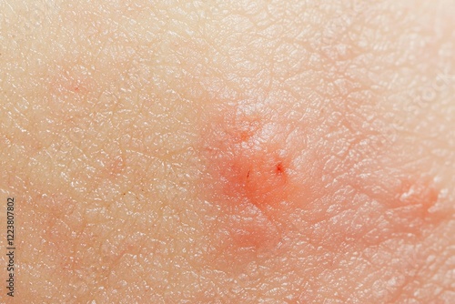 Red rash developing on irritated skin, indicating an allergic reaction or insect bite, resulting in noticeable redness and inflammation on the epidermis