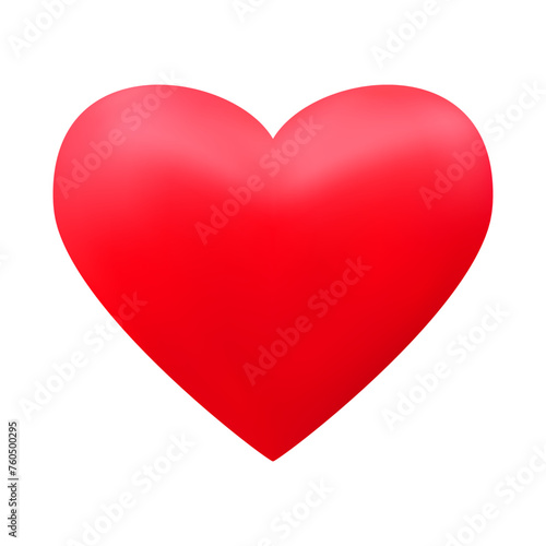 Red realistic heart icon on white background. 3d vector illustration.