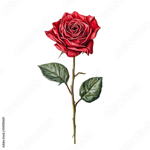 Red Rose PNG cutout isolated on white and transparent background. red rose png, rose transparent background, red rose cutout, isolated red rose, beautiful rose png, flower png,