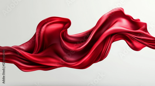Red silk fabric with flow liquid waves effect horizontal background. Realistic vector illustration of smooth cloth texture with waves and folds. Soft drapery textile material texture with wrinkles.