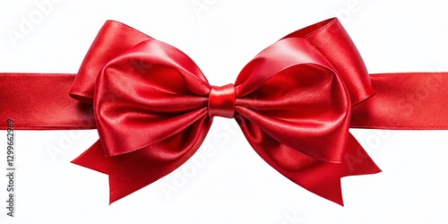 Red Silk Ribbon Bow, Festive Holiday Decoration, Panoramic, Isolated White Background
