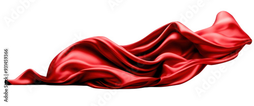 Red silky fabric flowing in the wind isolate on transparent background, cutout, png