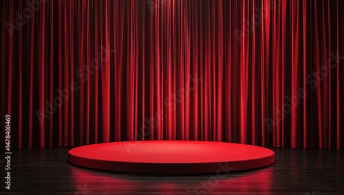 Red Stage Podium With Drapery