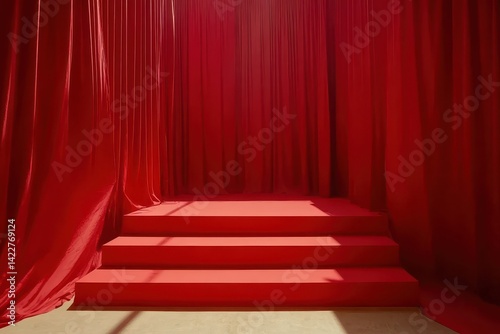 Red stage steps with curtains