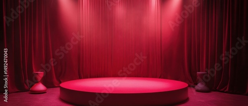 Red Stage with Velvet Curtains and Spotlights, Dramatic Presentation Backdrop, Studio Shot, Minimalist Design, Show Concept
