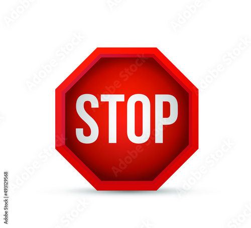 Red Stop Hand Block Octagon Sign or Adblock or Do Not Enter or Forbidden Icon with 3D Shadow Effect. Vector Image.