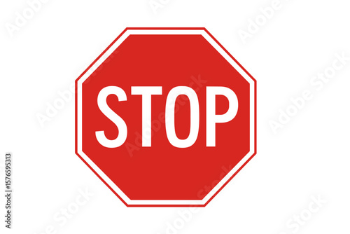 Red Stop Sign Icon. Octagonal Road Sign. STOP Text Symbol. Traffic Safety Warning. Do Not Enter. Vector Illustration. Isolated Transparent Background. Highway, Street, Intersection, Caution.