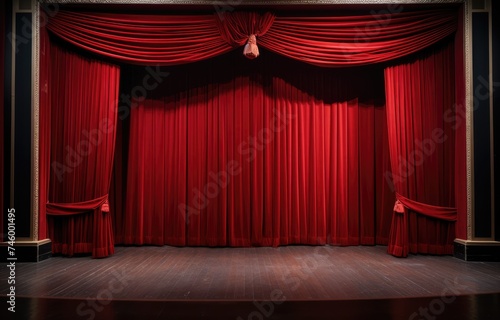 Red theater curtain. Luxurious silky velvet tiled drapes texture.