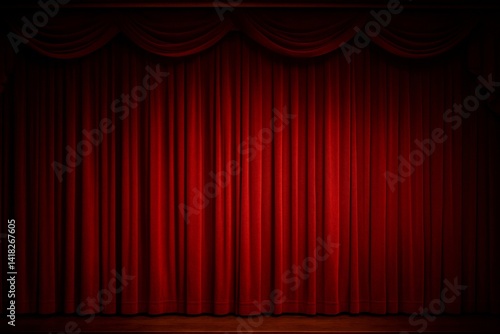 Red Theater Curtain Ready for Performance at Night Event in Cultural Center