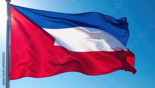 Red white blue tricolor flag waves in the wind, red, national symbol