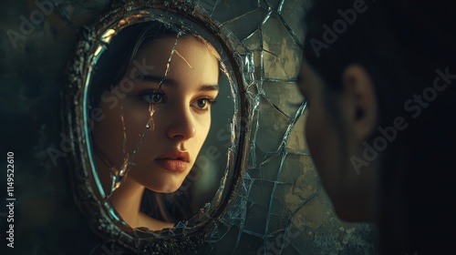 Reflective Self-Discovery Dark Room Portrait Photography Intimate Environment Close-Up View Identity Crisis Concept