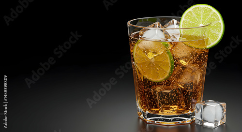 Refreshing Citrus Drink with Ice Cubes and Lime Slice
