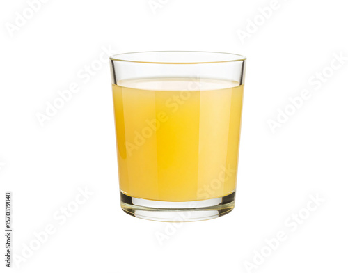 Refreshing Glass of Yellow Juice Beverage on White Background.