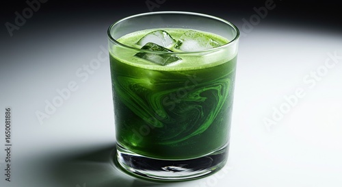 Refreshing Green Cold Drink with Ice Cubes and Swirling Motion Isolated on Transparent Background