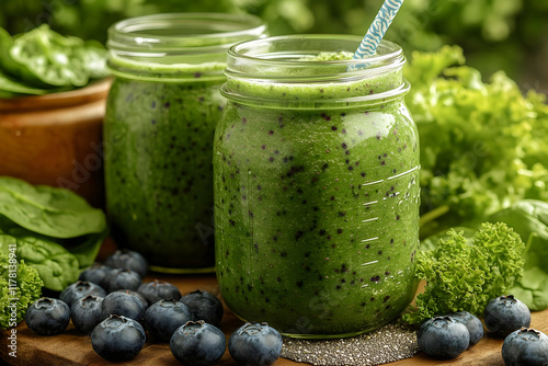 Refreshing Green Smoothie with Spinach, Blueberry and Chia Seeds