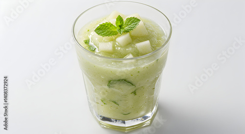 Refreshing Honeydew Melon Smoothie with Mint Garnish on White Backdrop
