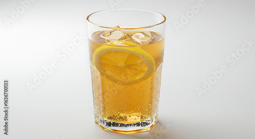 Refreshing Iced Tea with Lemon: A Cool and Invigorating Beverage on a Clean White Surface, Featuring an Elegant Glass and