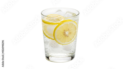 Refreshing Lemon Water with Ice Cubes in a Clear Glass