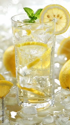 Refreshing Lemonade Soda With Ice Cubes And Mint Garnish